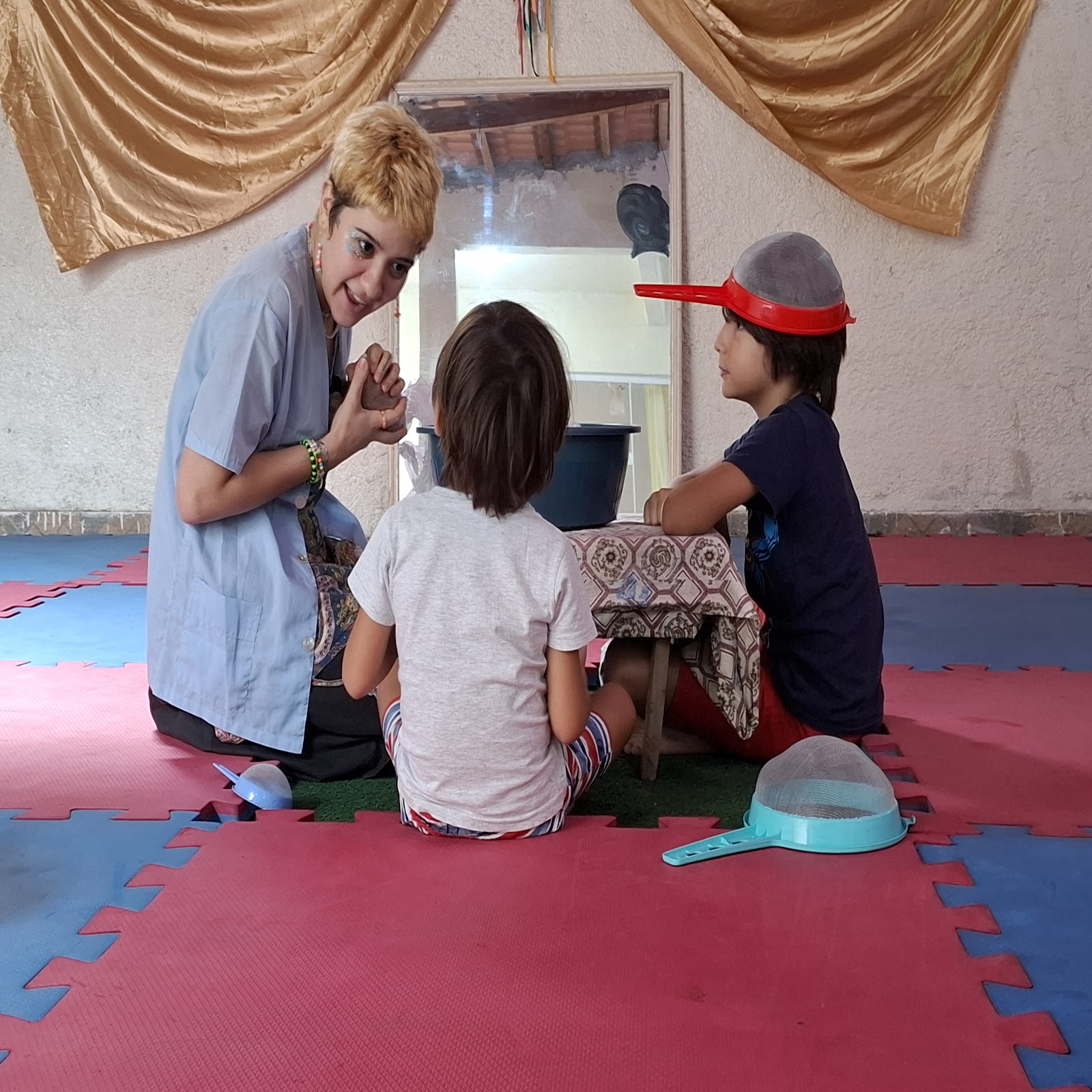 Brinquedos feitos com o que se tem — terra, garrafas, sacolas. O descarte vira matéria-prima, abrindo reflexão sobre resíduo e produção sem pedagogia forçada.